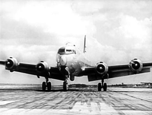The 5 stars actor in this movie is the Douglas C-54D-15-DC Skymaster s/n 43-17223 c/n 22173/DC625 delivered to USAAF during Summer 1945. Involved in a minor landing accident near Montevideo, Uruguay on 17 July 1947. And in another one at Tachikawa Air Base, Japan on the 1st March 1951. Bought by Americada Corp on September 1966 and registered as N68783. Withdrawn From Usage and stored on 1970.