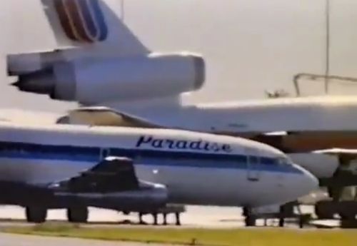 Boeing 737–200 of movie airline Paradise Airlines. Paradise flight 243 was scheduled to fly from Hilo to Honolulu.