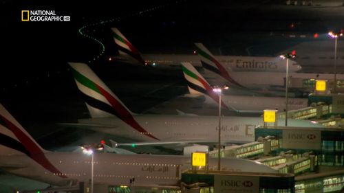 The episodes contain many shots of Dubai's terminals with numerous aircraft, most of which are from Emirates.