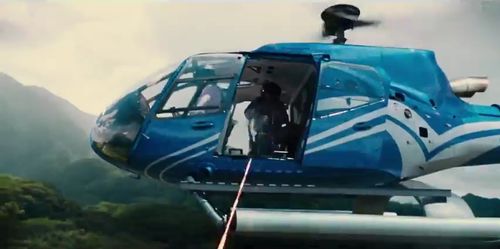 An InGen helicopter used as Masrani's personal transport. Later used with a door gun in an effort to kill Indominus rex, and crashes into the aviary after being attacked by pterodactyls and pteranodons. False registration JW001.