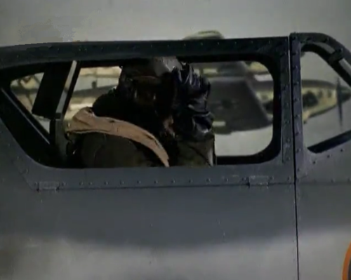 When the escort fighter shoot down the german one, this fixed landing gear model is visible. Perhaps a Tachikawa Ki-36 ?