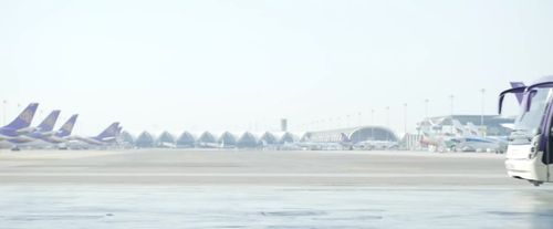 In Suvarnabhumi Airport (BKK/VTBS). On the right, Airbus A320 and Airbus A319 aircraft of Bangkok Airways.