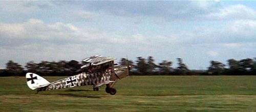Presented in the story as an advanced new prototype of german aircraft industry, faster and very maneuverable, it is given to handles of ace Bruno Stachel (G.Peppard). But airplane is not perfectly settled yet, and Bruno Stachel will crash and die in it. Actually, the aircraft is anachronistic for a WWII story, being in fact a 1929 french Morane Saulnier MS.230, a successful training airplane of the 30’s built at around 1100 samples.