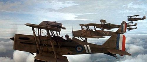 Formation of S.E.5 replicas, but background airplanes are De Havilland Tiger Moth.