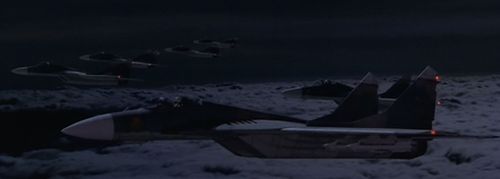 [[Image:AF1Mig-29.jpg|thumb|500px|none|Migs in formation ready to attack Air Force One]]