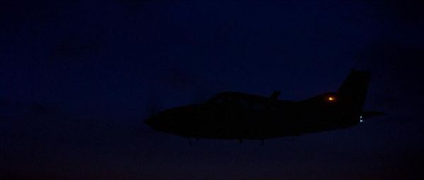 Light plane seen in the background at the airfield where Scott Freeman boards his plane.