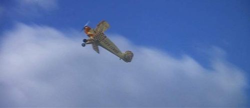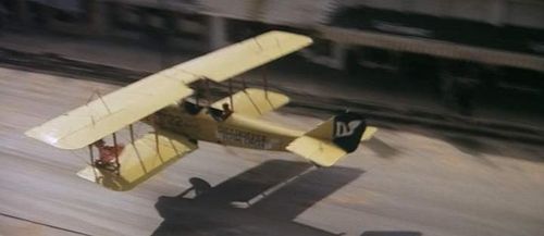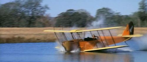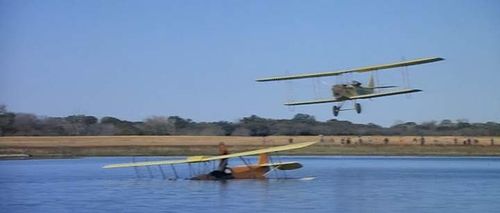 For this crash scene on the water, the JN-4 has been replaced by a more common De Havilland Tiger Moth.
