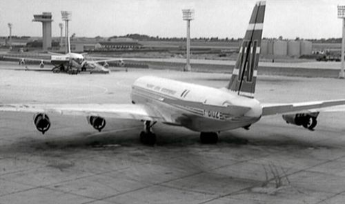 Aéroport de Paris-Orly, a DC-8 of TAI-Transports Aériens Intercontinentaux, and in the background a 707 of Air France.