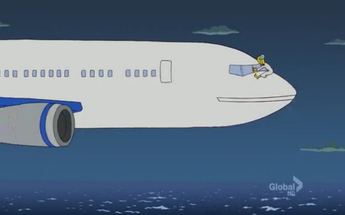 Mr. Burns and Homer uses the private jet of Mr. Burns to fly from Springfield to Chicago. After that flight, Homer cancels his job in the nuklear power plant to find a new job where he is able to use his own private jet.