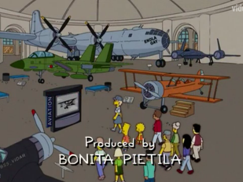Seen at the Springfield Air & Space Museum. The B-29 is named "Enola Gay". This was the aircraft that drops the atomic bomb onto the city of Hiroshima. Same aircraft in other movies at IMPDb: Frequently Seen Aircraft.
