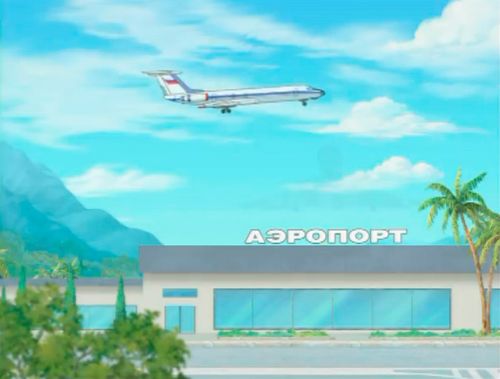 An animated plane is a very accurate depiction of Tu-134, although in further scenes it’s labeled “Nu-19” (a reference to series title and episode number).