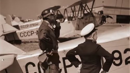 Airport of Kiev-Brovary which was the place where Istrebiteli was filmed the previous year. German army offensive totally destroyed it in 1941 and after the war, a new place was held for the next airport.