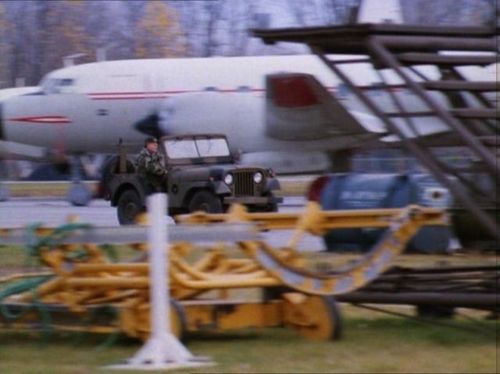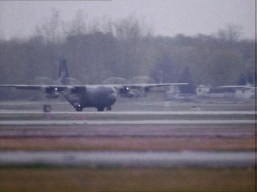 Transport plane seen first at the airfield where Chappy's flight school is based and latter on at the base where the Chemical Weapons are leaving from.