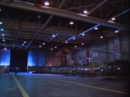 Seen in the background in a hangar at an airforce base.