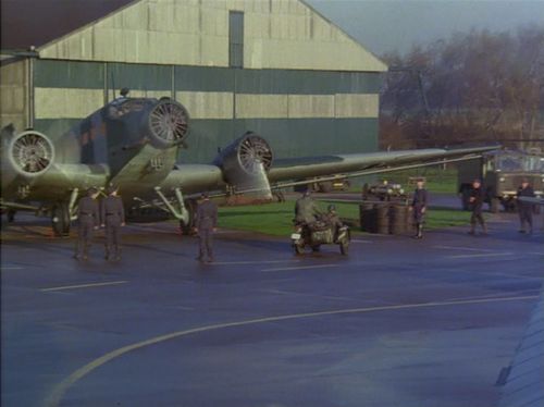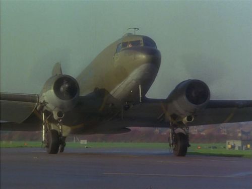 The Dozen fly into occupied France aboard this plane which is intended to be a captured German aircraft, but is in fact a C-47 mocked up with German army insignia. The code NA+LB does correspond to a real DC-3-194E, c/n 2036 that was captured from KLM by Germany in 1940.