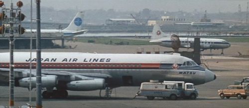 Convair 440 of All Nippon Airways behind, with the tail of a Pan Am 707 further in the background.
