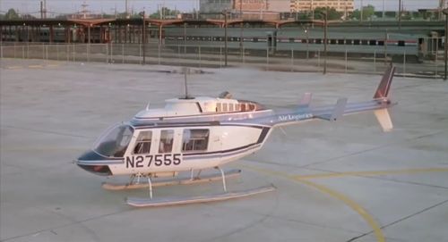 Richards' family along with Hunter's sister and grandfather depart from the hospital with their security detail in this helicopter. Registration N27555, C/N 45250.