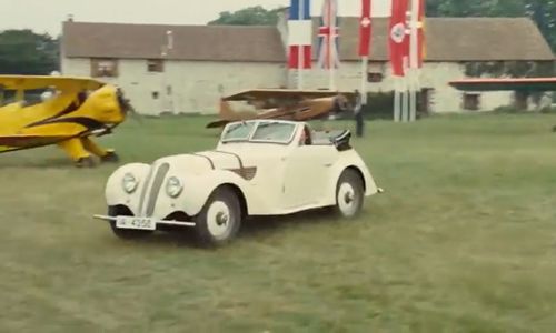 Reg. F-AZAB Salmson D6 Cricri is the brown aircraft behind the BMW 328 Autenrieth Sport Cabriolet.