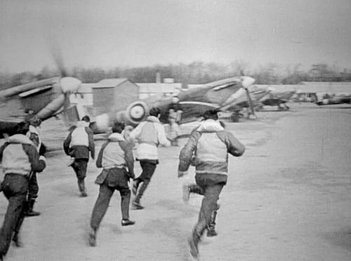Retreat of British and French troops at Dunkerque in 1940. Shot from A Yank in the R.A.F..