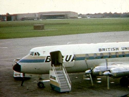 In the background, a Vickers 833 Viscount of British United Airways, and an unidentified De Havilland DH114 Heron.