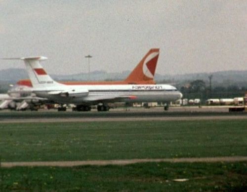 Notice in the foreground this interesting Tupolev Tu-134A of Interflug, registered DDR-SCX, c/n 48320.