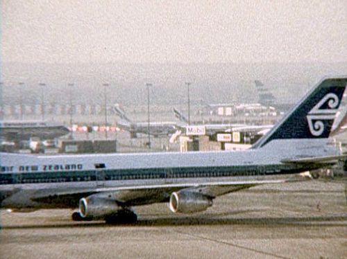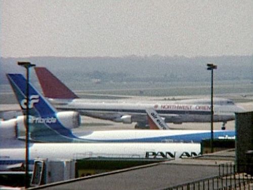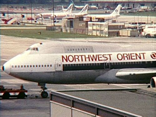 Boeing 747 of Northwest Orient Airlines behind it.