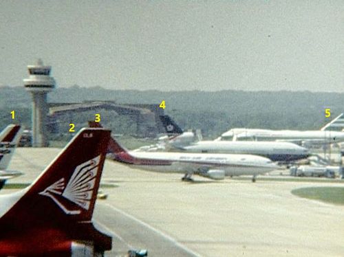 In the background,already seen few pictures before: an unidentified Twin-Jet of Caledonian, with just behind an other unidentified Twin-Jet of British Airways and a Boeing 747-236B of British Airways.
