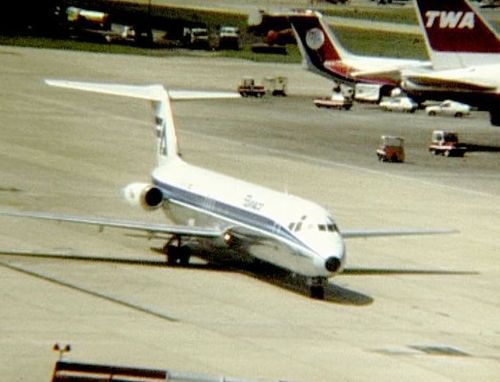To the right, British Aerospace BAe 146-100 of Dan-Air London and TWA's 767.