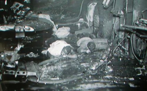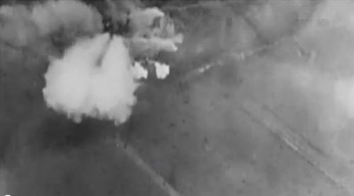 A gun camera during a straffing with Bf 109 or Ju 88 under the fire.