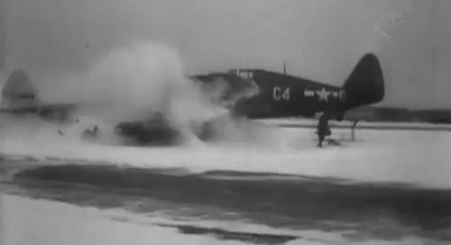 (bottom right) A Wildcat under the snow, probably during a war bond campaign.