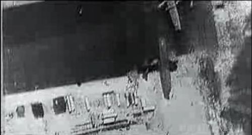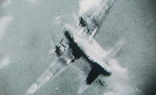 Gun camera during straffing of what seems to be Heinkel He 45 used for primary training or night harassment missions.