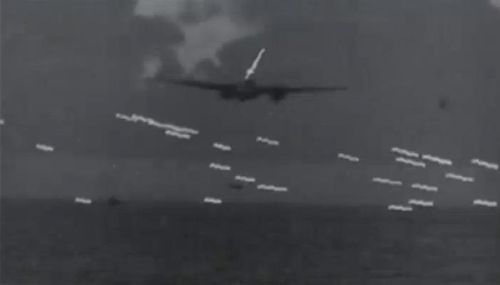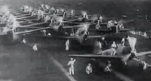 Archive footage of the take-off of the B5N ready to attack Pearl Harbor.