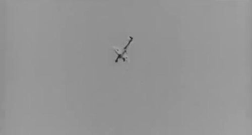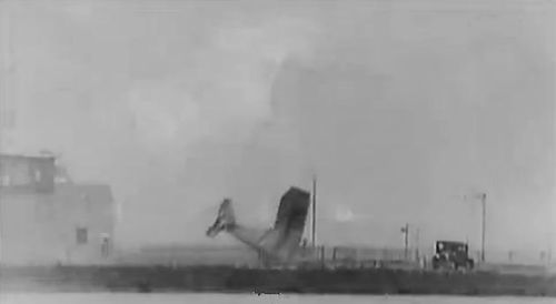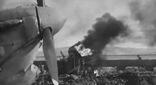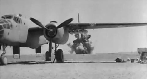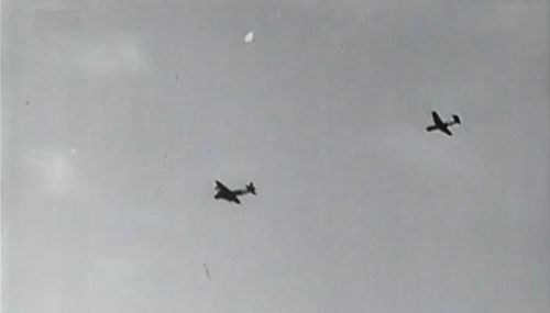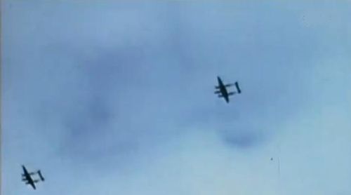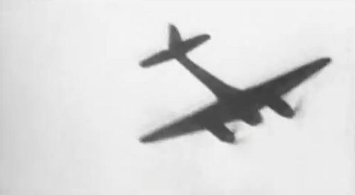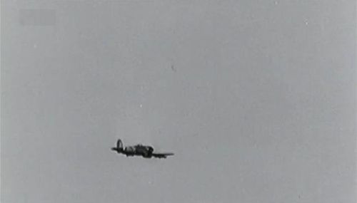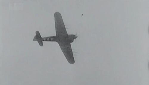With a Douglas B-23 Dragon hidden by the smoke. Same aircraft seen in other movies - IMPDb: Frequently Seen Aircraft.