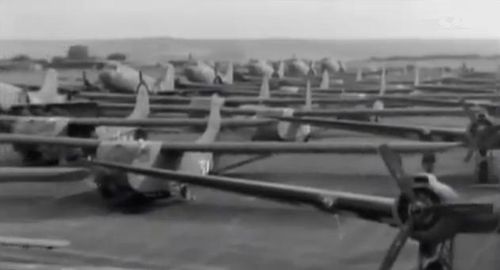 What seems to be a scene from a german propaganda movie (perhaps Stuka !).