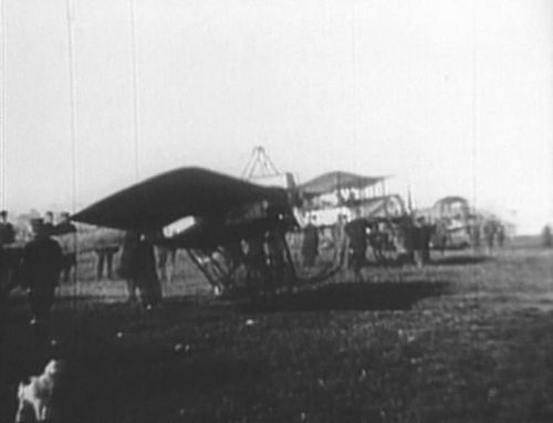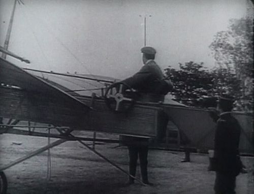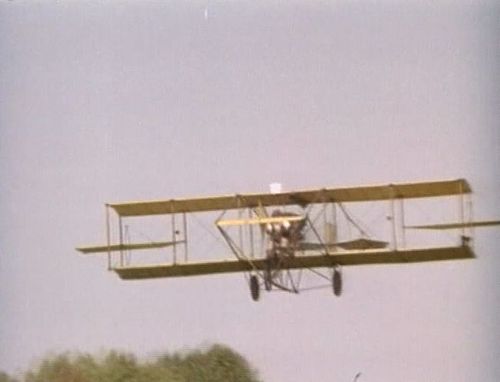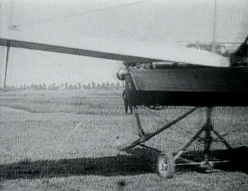 Specific training versions of Blériot XI, made for training in taxiing phases. With truncated wings, enforced fuselage, and big wheels, there were on purpose unable to take-off and fly.Same archive footage of the first flight across the English Channel seen in other movies at IMPDb: Frequently Seen Aircraft.