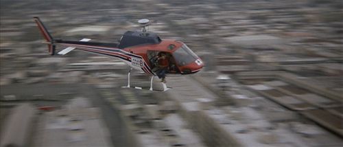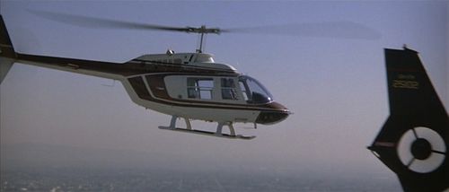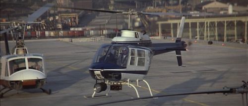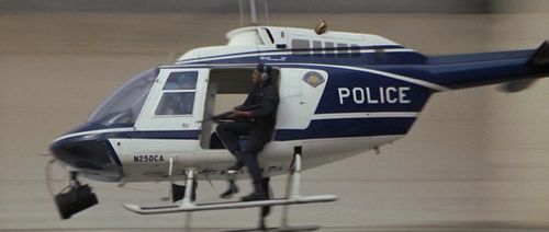 Several are used extensively by the police including Murphy and his spotter, Lymangood. Theirs (not pictured) carries Registration No. N2044C, Serial 3363 (see IMPDb: Frequently Seen Aircraft) except for a couple of shots where N250CA is substituted. Murphy and Lymangood also fly a civilian JetRanger in one scene, Registration N200NP, Serial 3264, which crashes (safely) due to being sabotaged beforehand by Cochrane.