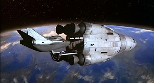 The most impressive special effect model of the film, this chunky heavy lift rocket was several feet tall.