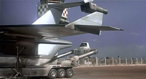 This aircraft has a number of features commonly found in other Gerry Anderson designs: VTOL capability, a detachable cargo pod, and engine nacelles in structurally dubious locations.