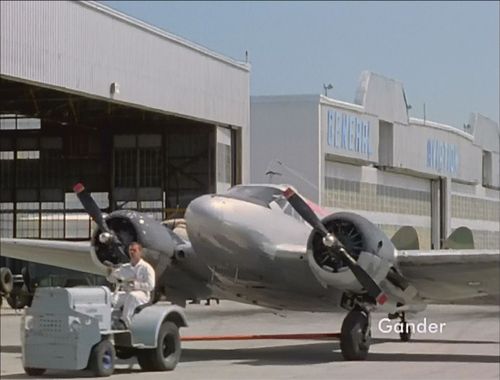 A pair of Beech 18s are used as ground props. One of them is referred to as an Expeditor (apparently a reference to the C-45 variant), but this is probably anachronistic for the period of the film. They are often seen taxiing or being towed around the ramp, but the few flying scenes are done using CGI models.