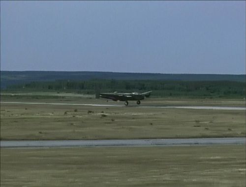 An Avro Lancaster makes an appearance improbably depicting an American B-24. The landing scene may have been filmed using the flyable Lancaster in the collection of the Canadian Warplane Heritage Museum, but the Lancaster on the ground looks like a CGI model.