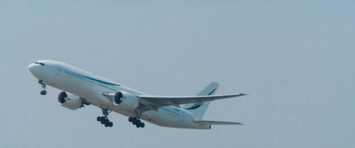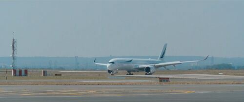 Same fictitious branding but continuity error as the airliner taking off is not the Airbus A350 but a Boeing 777.