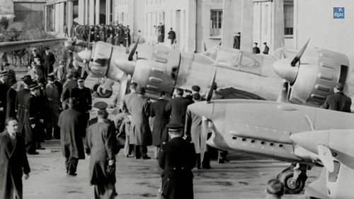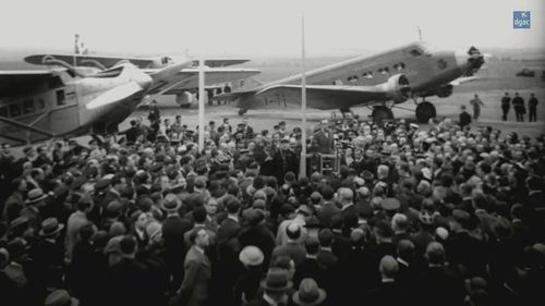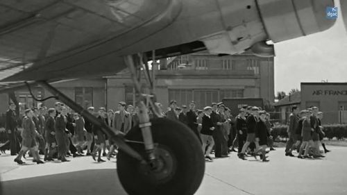 Official presentation of the new company Air France fleet in 1933. From left to right:
