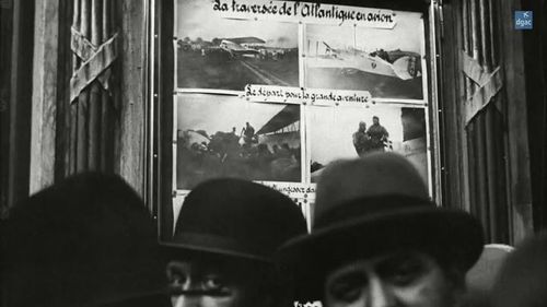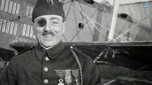 Charles Nungesser is saluting the crowd with François Coli at his right.