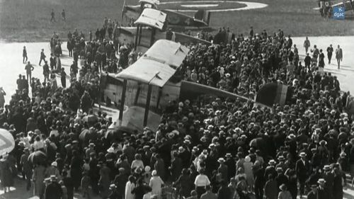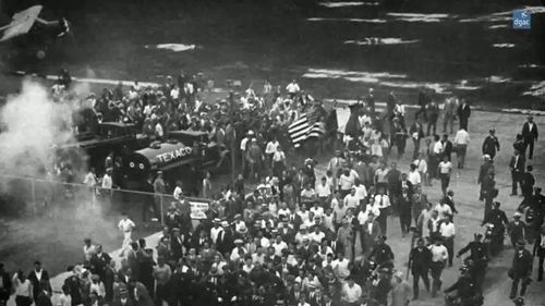New-York Curtiss Field on 1930 September 3rd(GMT) at arrival of Costes and Bellonte Breguet Point d'interrogation 37 hours raid from Paris.