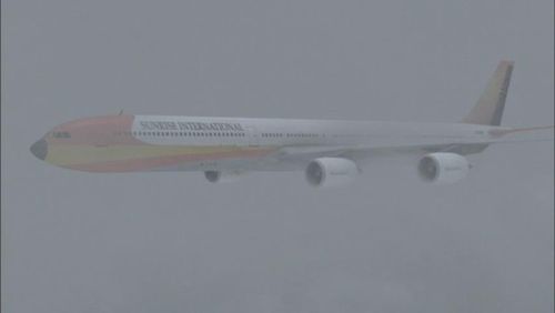 This (CGI) Airbus A340 of fake airline Sunrise International nearly crashed into GSA flight 117 while landing at John F. Kennedy International Airport.