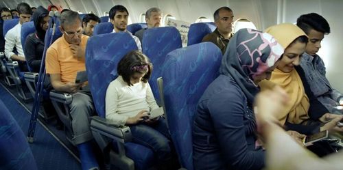 Iran Aseman Airlines logos in the patterns on the seats.