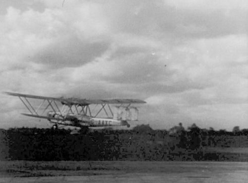 Registration G-AAXC Heracles. Taking off from London Croydon Airport.
