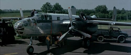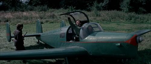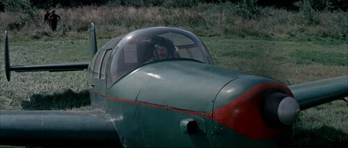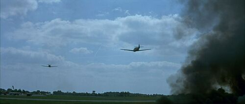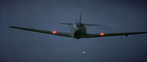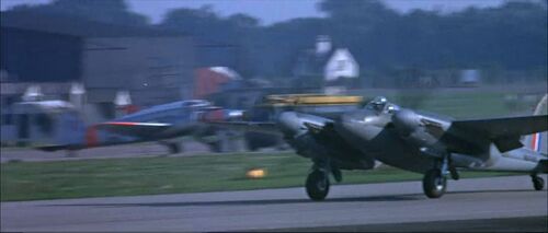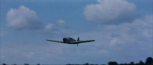 Two "German" aircraft strafe the airfield and later attack the squadron towards the end of the film. These pretending Messerschmitt Bf 108s are actually the post war French built and Renault engined version S.N.C.A.N. Nord 1002 'Pingouin' II from 1946. Same airplane is used in Mosquito Squadron - IMPDb: Frequently Seen Aircraft (Military Fixed-Wing).