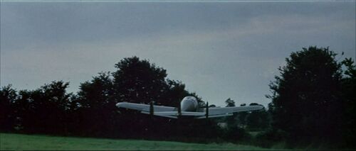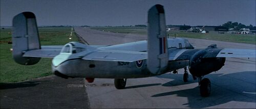 This civil aircraft usually used as a camera plane (and christened moviemaker II) traded its nose art for roundels and fin flash during filming.