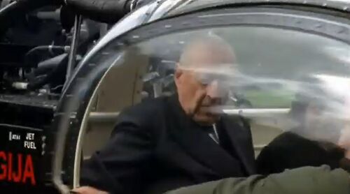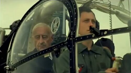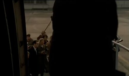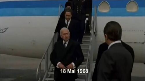 The camera is chasing the Prime Minister Pompidou (at right, Didier Bezace) and so next second we guess among the blurred shapes some bizjet including an anachronistic trijet Dassault Falcon 50 before finding again the Aérospatiale SE 210 Caravelle 12.